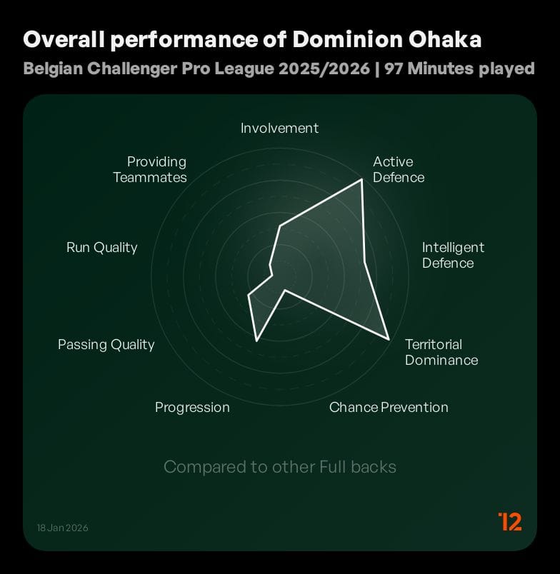 Datan visar att Ohaka är en utpräglat defensivt lagd ytterback med stor intensitet: